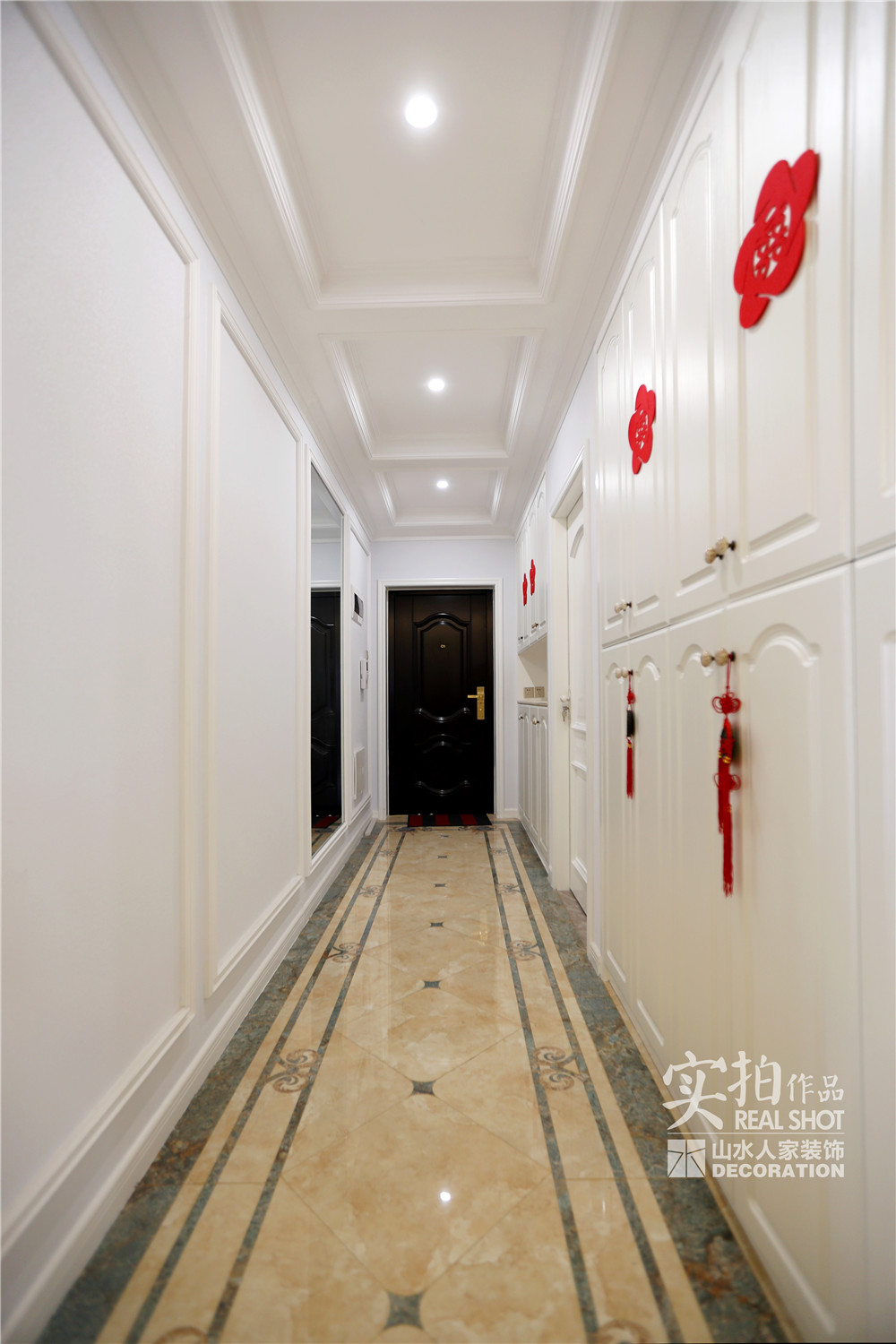 從整體來看,房間布置除了盡可能增大客廳、餐廳活動空間之外,門廳入口也盡可能做大了。門廳的空間拼花磚,配上有現(xiàn)代銀鏡的穿衣鏡,擴(kuò)大空間感,讓長廊走起來更有氣勢。門口的墻面掛飾增強了儀式感。后期在另一面墻體可做成照片墻的形式,一起回顧往昔邁步向前。