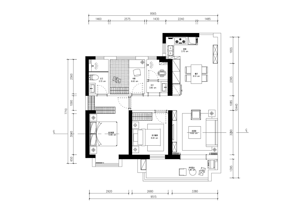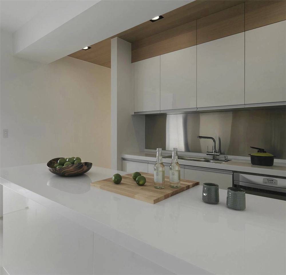 簡潔干練的線條和自然元素紋理搭配的大面,精致不多余的裝飾手法,屋內(nèi)每一處視角都散發(fā)著低調(diào)奢華的即視感。即簡約而不簡單的真實(shí)表達(dá),以立體構(gòu)成和平面構(gòu)成為主。客廳背景墻采用的大理石、kd灰橡木飾面等一些材質(zhì)綜合運(yùn)用在了客餐廳,整體給人的感覺就是高級大氣很穩(wěn)重,射燈我們選擇的是一個(gè)偏咖色的暖色調(diào)來作為整體的點(diǎn)綴。就餐空間設(shè)計(jì)上,做了一個(gè)開放式的廚房,使餐廳更加的多元化,好友聚餐以及日常制作美食都能滿足,餐桌一邊設(shè)計(jì)的是餐邊柜和酒柜,加上無主燈的加持,高級感滿滿,并且不失溫馨??蛷d背景墻采用的大理石、kd灰橡木飾面等一些材質(zhì)綜合運(yùn)用在了客餐廳,整體給人的感覺就是高級大氣很穩(wěn)重,射燈我們選擇的是一個(gè)偏咖色的暖色調(diào)來作為整體的點(diǎn)綴。臥室使用了和客廳、書房樣的綠色,空間上保持了連貫性,我們根據(jù)空間性質(zhì)去決定色塊的存在比例大小,與地板的木色搭配也相得益彰。廚房打開做開放式,空間更加通透。廚房餐廳整體感更完整。