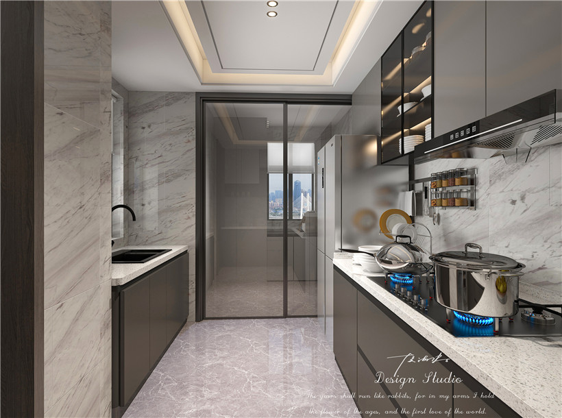 綠地公館118平現(xiàn)代黑白灰裝修效果圖