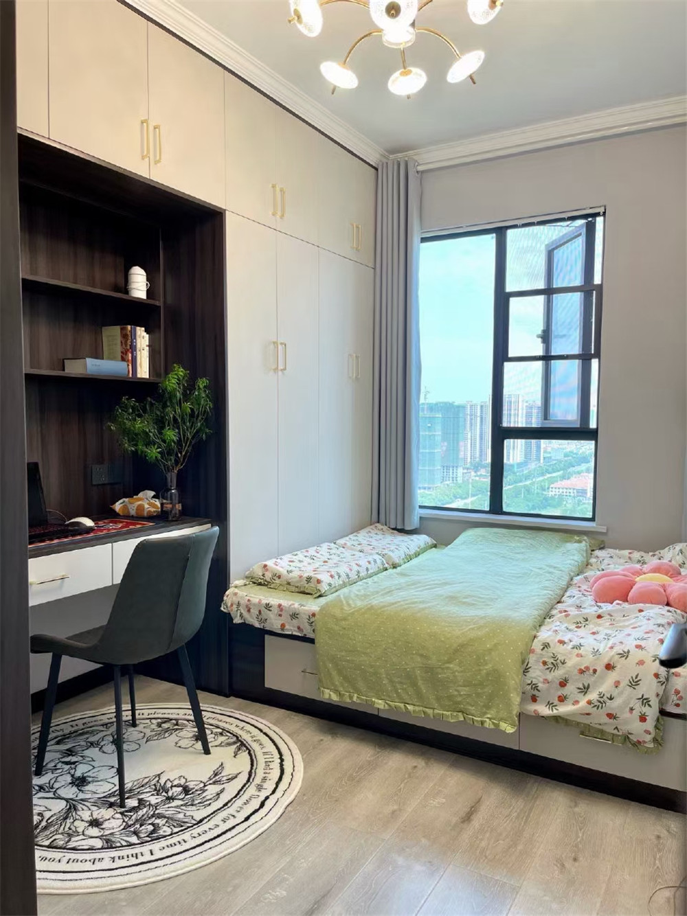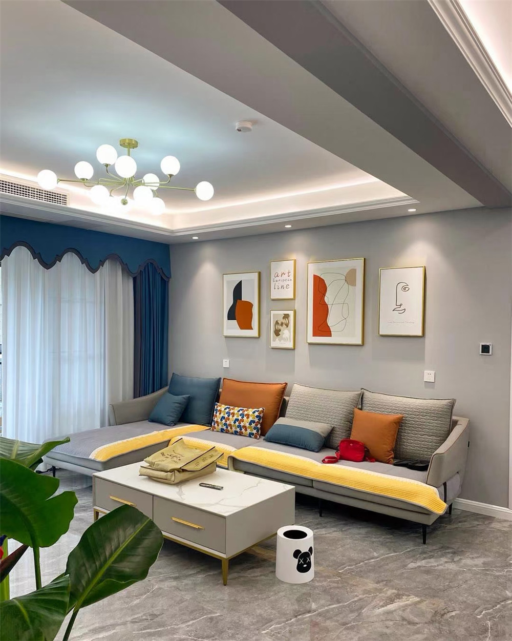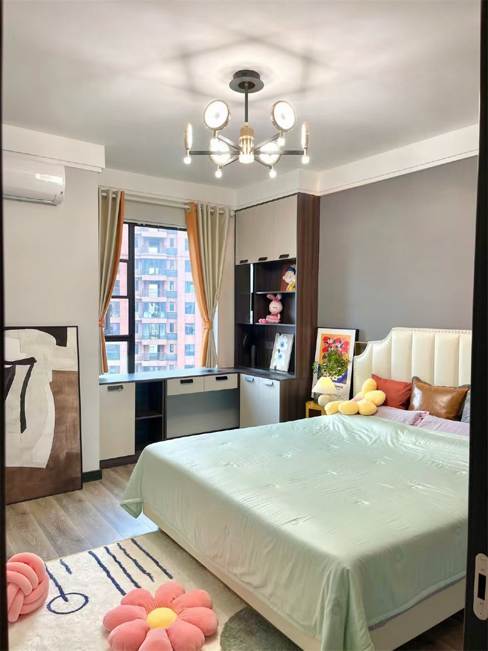 客廳背景墻采用現(xiàn)在比較流行的巖板鋪貼造型,墻面采用的是乳膠漆調(diào)色處理。簡(jiǎn)約而不簡(jiǎn)單,也比較環(huán)保。因?yàn)榧依锖笃谟欣先诵『⒌木幼。h(huán)保這一塊還是非常重要的。沙發(fā)背景就是使用的掛裝飾畫,看起來整體比較協(xié)調(diào)。臥室這一塊考慮到兒童房的設(shè)計(jì),就采用了榻榻米的布置格局。房間簡(jiǎn)約溫馨,房間吊頂不考慮中央空調(diào)和風(fēng)管機(jī),所以就采用簡(jiǎn)單的石膏板雙眼皮設(shè)計(jì),還有石膏線條的設(shè)計(jì),前后呼應(yīng)一種簡(jiǎn)約不簡(jiǎn)單的低調(diào)華麗的裝飾效果。
