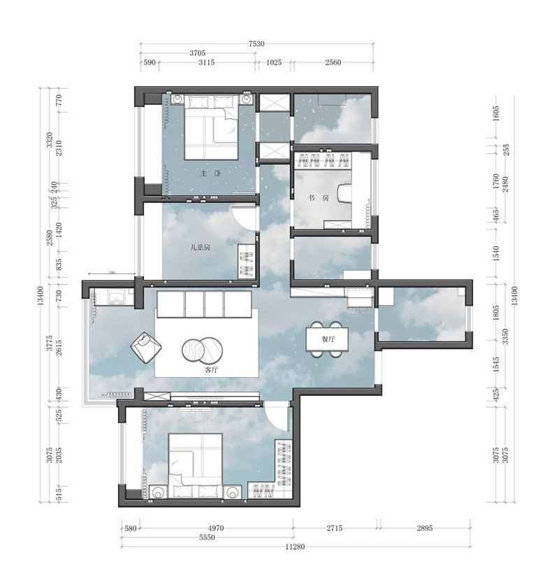 融創(chuàng)城90平現(xiàn)代風(fēng)格裝修效果圖