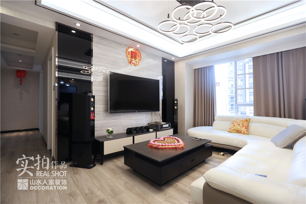 本案在設(shè)計(jì)上細(xì)膩地關(guān)懷著居住者的生活方式,借助簡(jiǎn)約的手法為業(yè)主打造一個(gè)休閑宜居的生活空間,把抽象的情感轉(zhuǎn)化為居住者可以感知的空間形式,在美學(xué)的引領(lǐng)下完成人與空間的情感訴求。色彩以黑與白為主,讓居室顯得簡(jiǎn)潔、利落而不單調(diào)。白色的明快,黑色的沉穩(wěn),加之咖色完美地調(diào)和了黑白的強(qiáng)烈對(duì)比。白色使視覺空間得到了延伸,而黑色又將中心明確,灰色讓剛強(qiáng)中不失柔和,不會(huì)覺得沉悶和壓抑。
