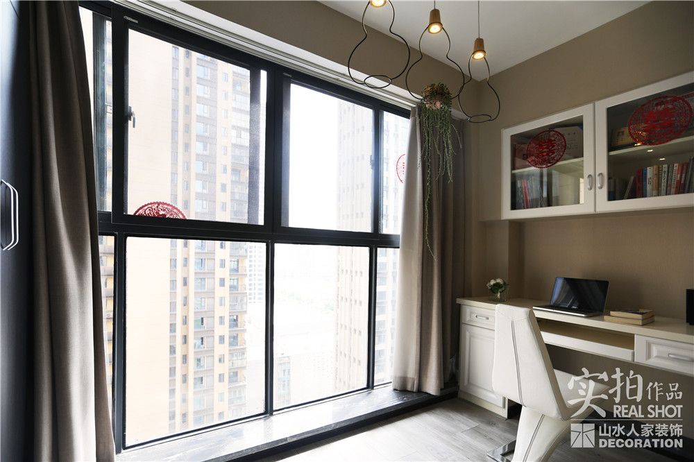 本案在空間功能布局上結(jié)合業(yè)主婚房的居住情況對(duì)原建筑作了合理的調(diào)整。在景觀最好的餐廳區(qū)域增設(shè)了吧臺(tái)區(qū)+卡座區(qū),利用卡座與吧臺(tái)背墻軟性定義了客廳及餐廳區(qū)的空間,使整體空間視覺寬暢又不失次序,在吧臺(tái)前喝上一杯咖啡或小酒時(shí),窗外廣闊的視野為休閑增添了一份心情。業(yè)主是一名時(shí)尚達(dá)人,所以直接把原先的書房改成衣帽間。