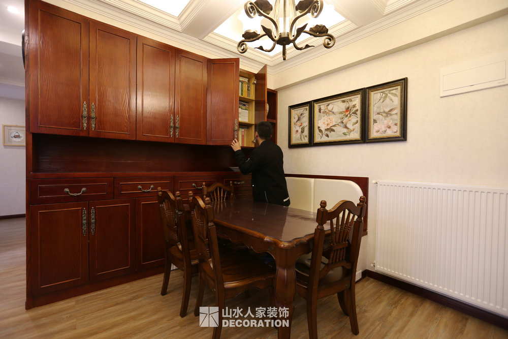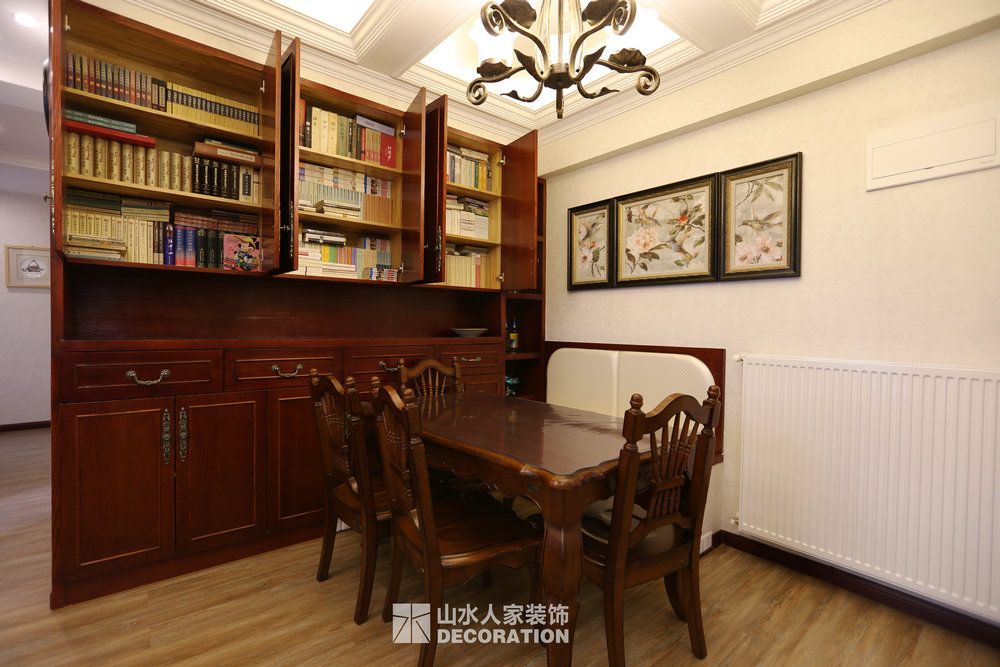 ③設(shè)計說明:此戶型是一個常規(guī)的三室兩廳雙衛(wèi)雙陽臺的戶型,戶型方正,南北通透,采光通風(fēng)都挺不錯。和業(yè)主溝時,女主人說希望有一個衣帽間,男主人則說需要大面的書柜和書房。于是在方案設(shè)計的時候,特地將主臥原本衛(wèi)生間的地方劃分了一部分做成了衣帽間,然后將主臥的陽臺做成了一個半開放式的書房。其他的區(qū)間則遵循了原始的格局,只是在細(xì)節(jié)上做了很多優(yōu)化,再一次見面溝通時方案得到了業(yè)主的一致認(rèn)可。而風(fēng)格上我們則選定了具有明晰線條、優(yōu)雅得體有度的古典美式,恰如業(yè)主第一次給我的感覺一樣。