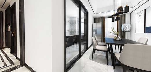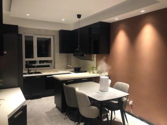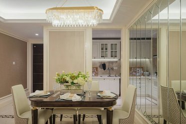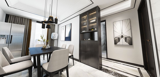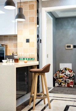 我自己做IT產(chǎn)品經(jīng)理人,比較喜歡看港劇,愛好戶外活動(dòng),本身也是從事科技行業(yè),四室兩廳的戶型比較開闊,滿足四口之家的生活需求,所以硬朗的港式風(fēng)格比較適合,家里人多,所以選擇六人餐桌,依舊以石材為主,不銹鋼元素融于其中。細(xì)節(jié)體現(xiàn)出現(xiàn)代港式獨(dú)有的前衛(wèi)、不受拘束的感覺。白色開放式酒柜隔板設(shè)計(jì)巧妙,便于收納又美觀。這些都是跟設(shè)計(jì)老師溝通過來確定下來。