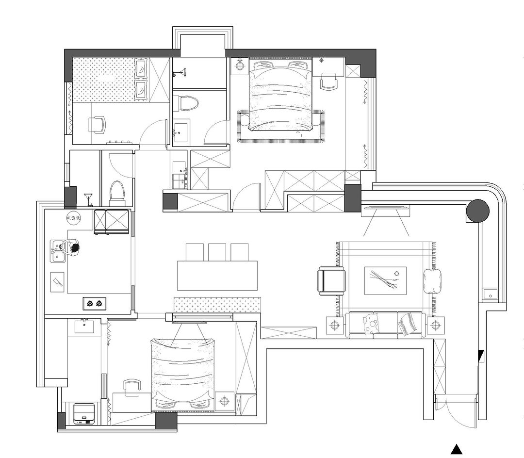 2、原始的過道和公共空間占去房子的大部分面積,使得每個(gè)臥室空間都很狹小,也很壓抑。同時(shí)公共空間的不合理規(guī)劃讓公共空間也很凌亂和不舒適。