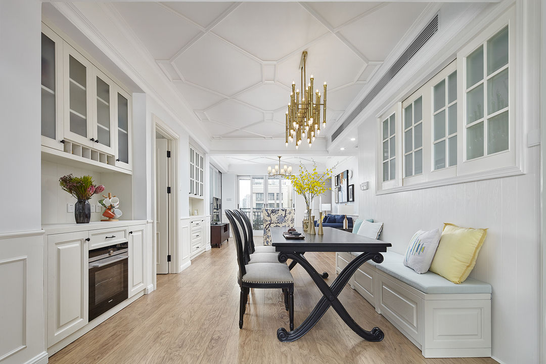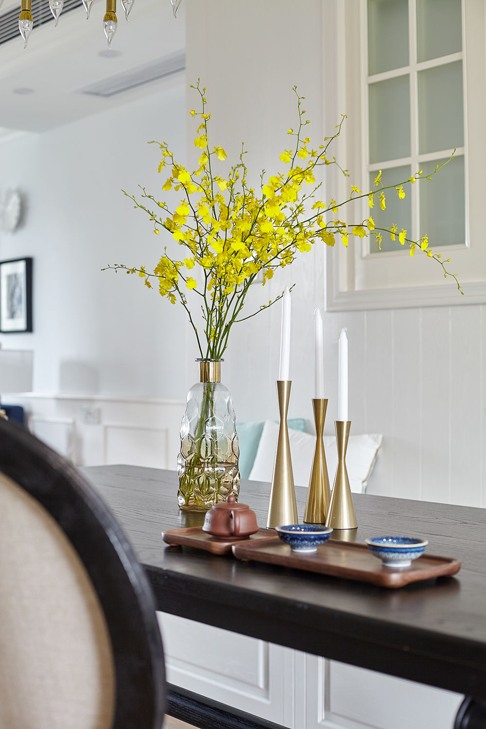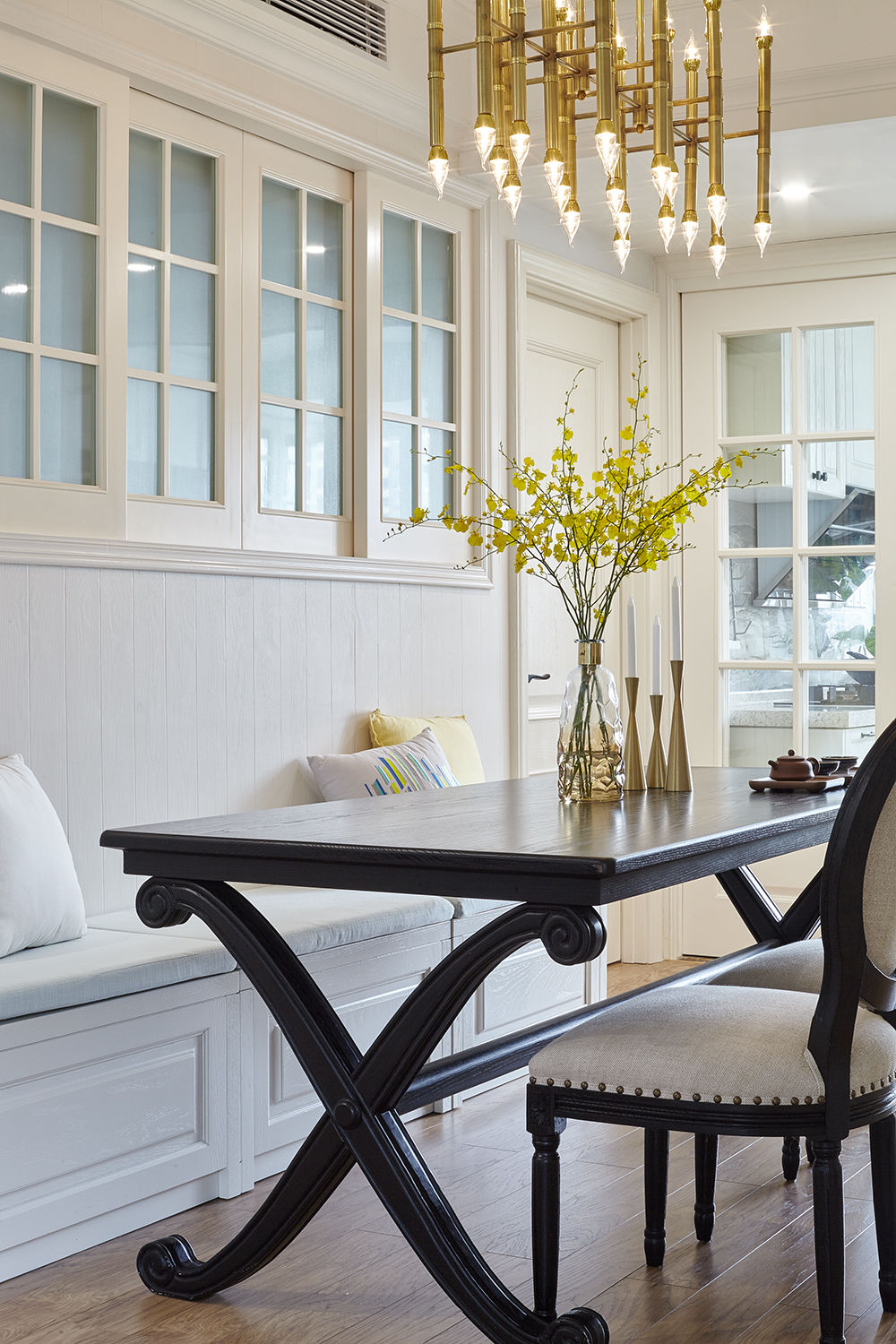 設(shè)計(jì)師在純白的基礎(chǔ)色調(diào)上,在豐富與克制、秩序與豐盈之間找到平衡點(diǎn),打造出簡約卻又不簡單的現(xiàn)代美式風(fēng)格。