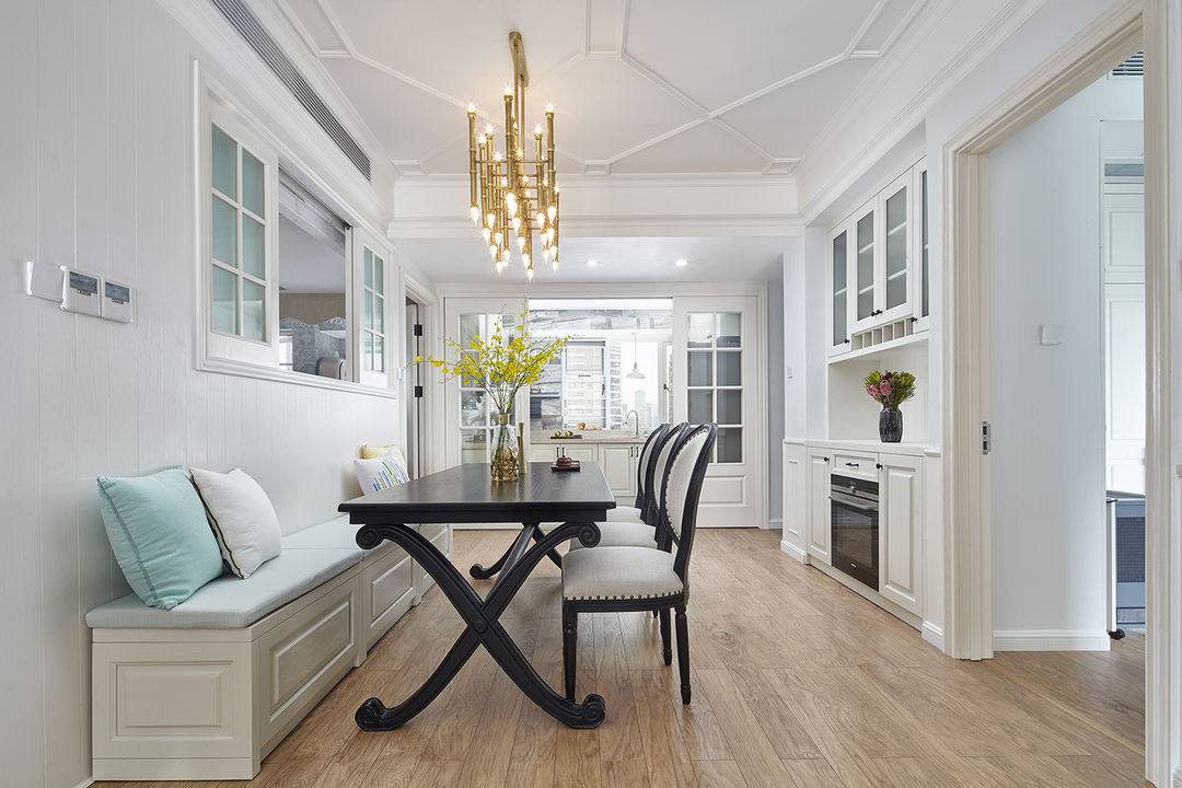文藝白的大手筆啟用讓客餐廳顯得清新明亮,嵌入式收納柜預(yù)留出了大量過道活動空間,餐廳與廚房的開窗設(shè)計(jì)則提升了空間互動性。