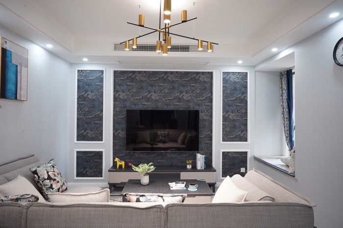 在普通的墻面上做點線條加以修飾,就能得到輕奢復(fù)古又有風(fēng)情意味的背景墻。不論客廳背景墻是白墻、還是刷顏色或者貼壁紙,都很好看。