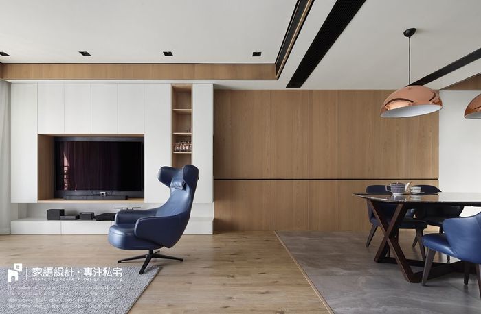 客廳是整個家最核心的區(qū)域,生活中更多物品的收納功能,在這個區(qū)域可以發(fā)揮得淋漓盡致。投影幕布代替電視機(jī),釋放柜體空間,整排柜體既實現(xiàn)了背景墻的造型創(chuàng)意,也解決了生活收納的問題。